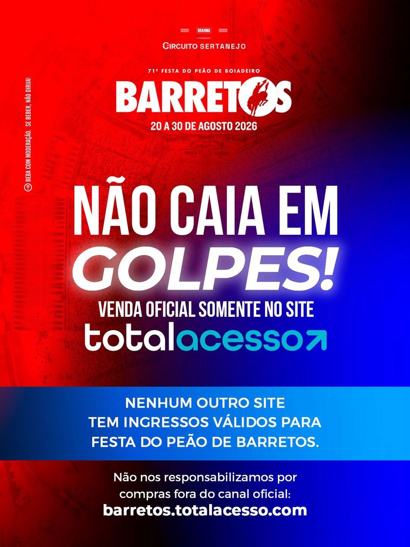 A Festa do Peão de Barretos alerta que a venda de ingressos é realizada exclusivamente pela plataforma Total Acesso, único canal oficial autorizado.